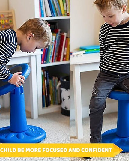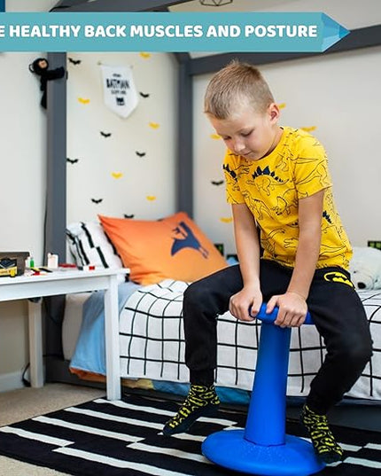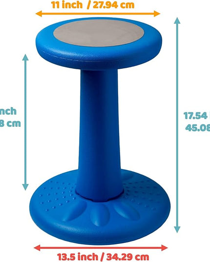 Studico ActiveChairs Kids Wobble Chair, Flexible Classroom Seating improves Focus, Posture & Helps ADHD/ADD. Get The Wiggles out, Active Fidget Desk Chairs, Pre-Teen 17.75" Stool, Ages 7-12, Blue