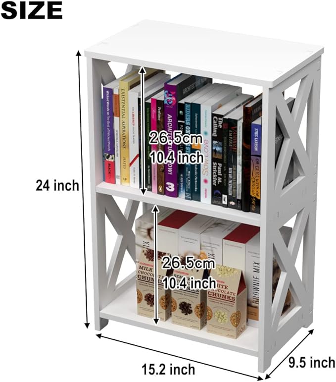 End Table & Side Table 3-Tier, 2 Shelf Small Bookcase, Bookshelf, Simple Nightstand, Bedside Table with for Bedroom, Bathroom, and Living Room Display Rack, White