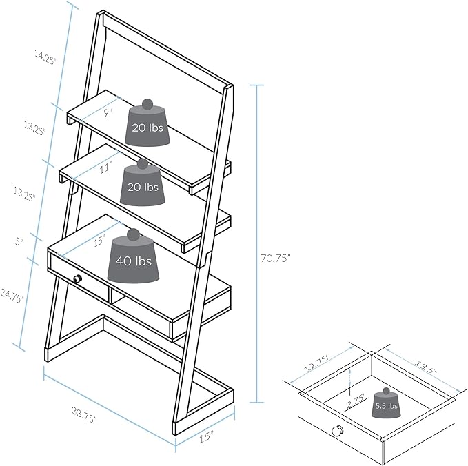 About This Modern two tone ladder design complements clean white surfaces with natural hardwood side beams. Simple and easy assembly...