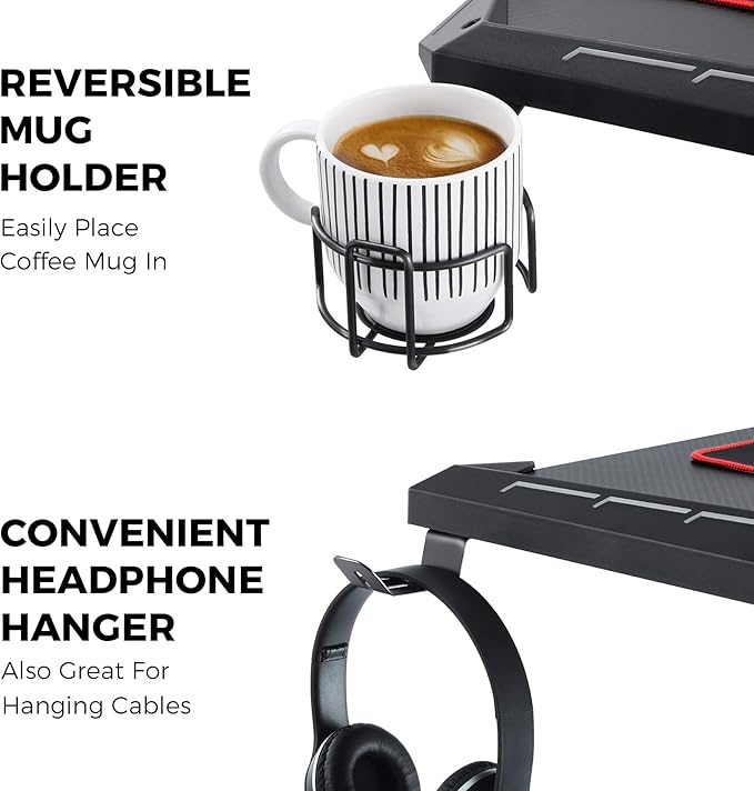 About This 【Our Advantage - Ultra-Sturdy Z-Shaped Design】The ergonomic gaming desk is designed with ultra-stable and sturdy Z-shaped legs. Rebar...