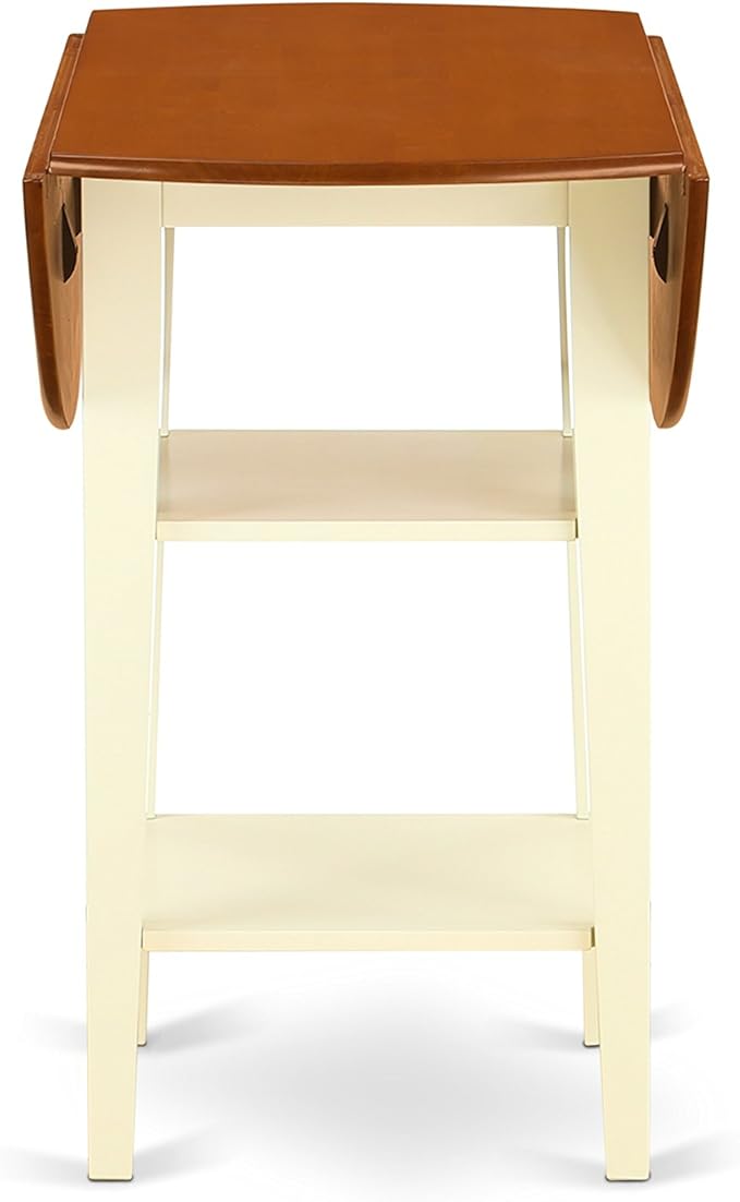 East West Furniture SUKE5H-BMK-W Sudbury 5 Piece Kitchen Counter Height Dining Set Includes a Round Table with Dropleaf & Shelves and 4 Wooden Chairs, 42x42 Inch