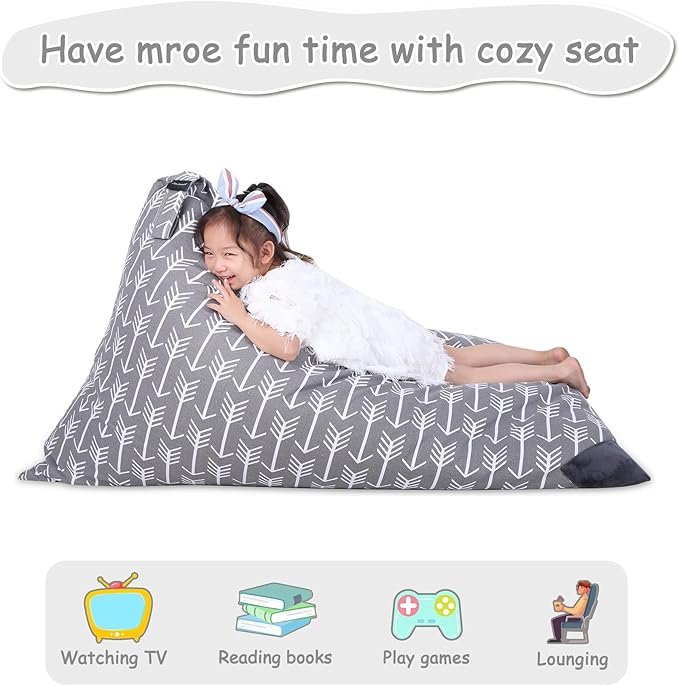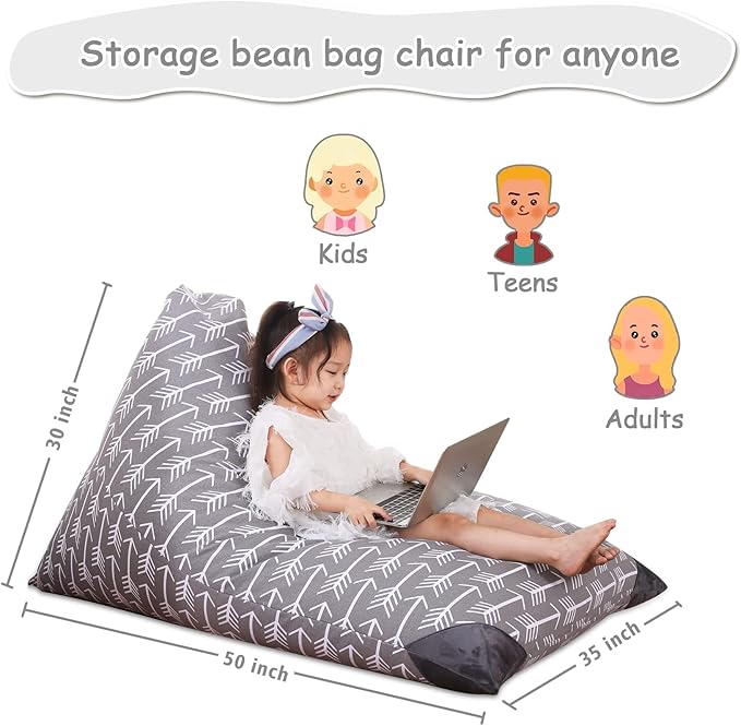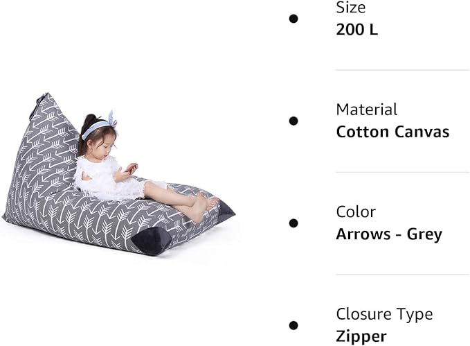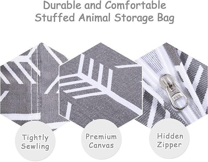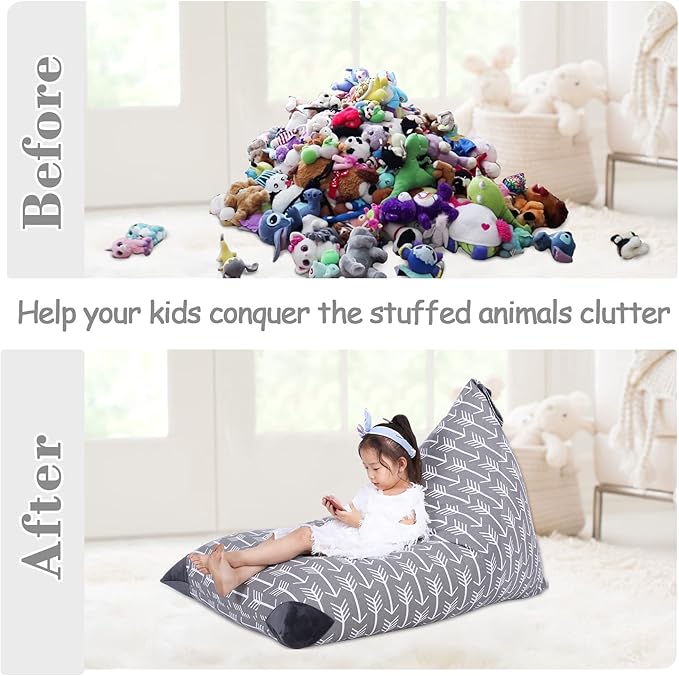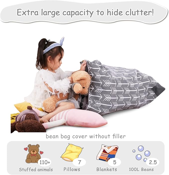 Jorbest Stuffed Animal Storage Bean Bag Chair for Kids and Adults, Stuffed Animal Bean Bag, Premium Canvas Stuffie Seat - COVER ONLY (Grey with White Arrows 200L/52 Gal)