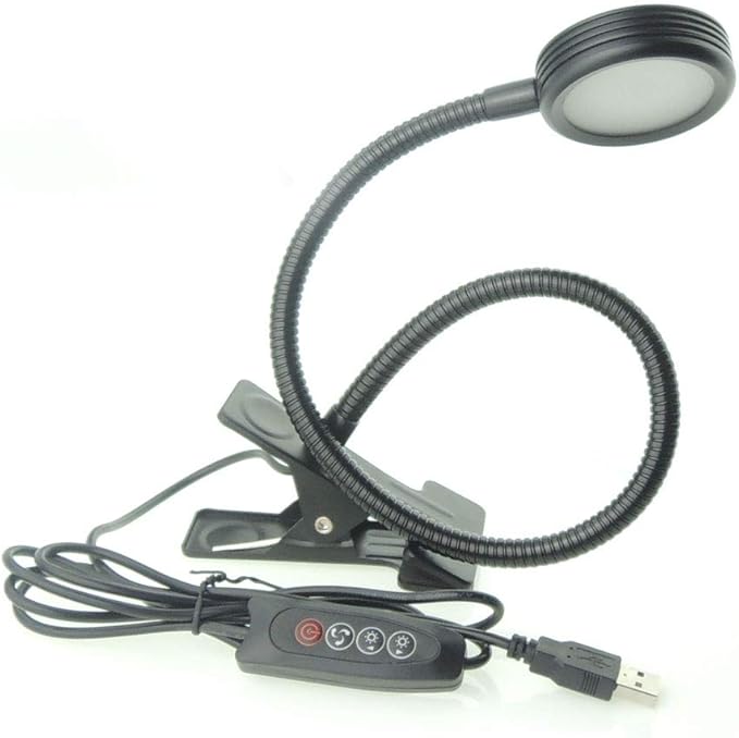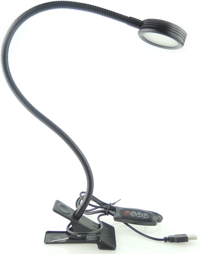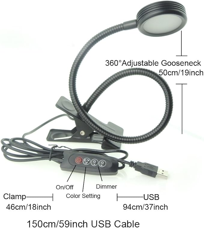 Dimmable Clip on Clamp LED Gooseneck Desk Light Lamp, Clip-on 3 Color Changeable Reading Lights, C-Clamp Nightlight, USB Port (Black (3 Color Temperature))