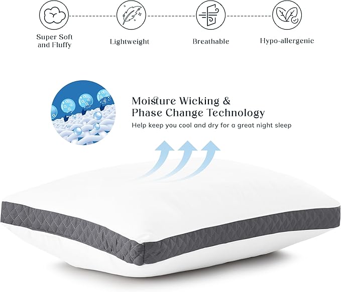 About This PREMIUM QUALITY: Our bed pillows crafted from brushed microfiber and filled with 100% virgin polyester 7D hollow siliconized...