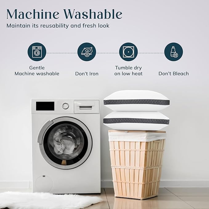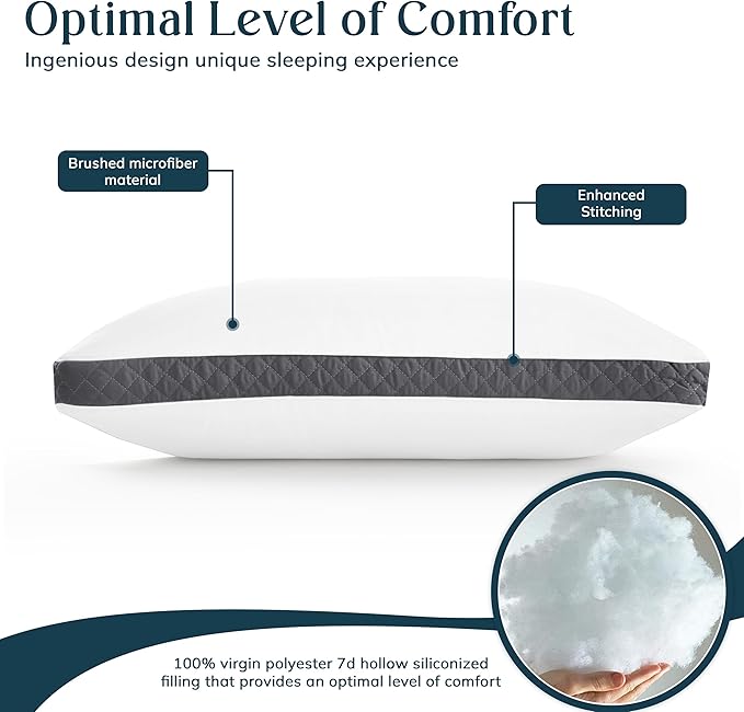 About This PREMIUM QUALITY: Our bed pillows crafted from brushed microfiber and filled with 100% virgin polyester 7D hollow siliconized...