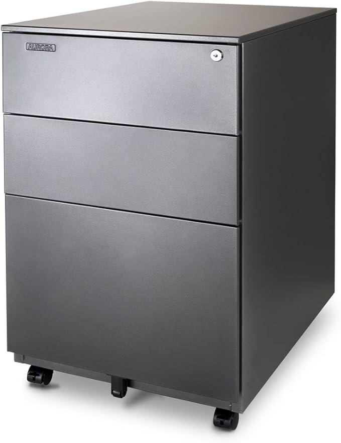 Aurora Modern SOHO Design 3-Drawer Metal Mobile File Cabinet with Lock Key Sliding Drawer, Fully Assembled, Metallic Charcoal