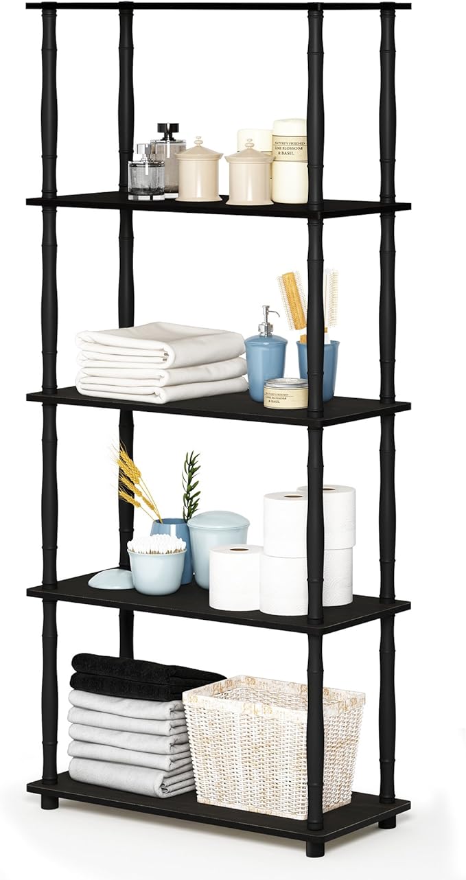 Furinno Turn-N-Tube 5-Tier Multipurpose Shelf / Display Rack / Storage Shelf / Bookshelf, Classic Tubes, Espresso/Black