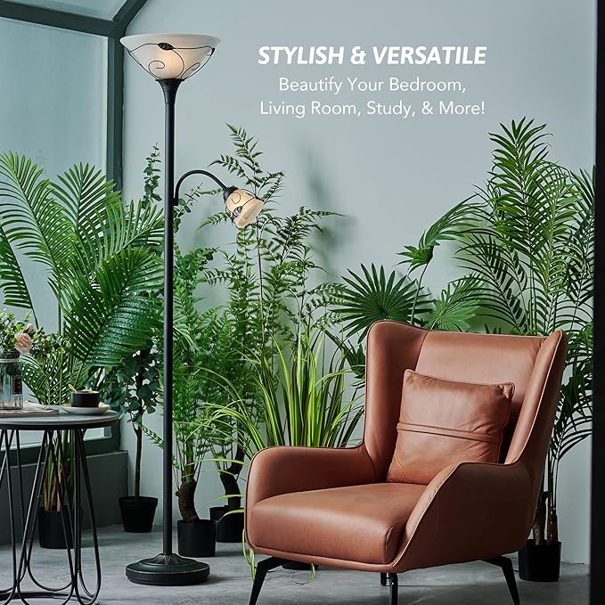 VONLUCE Torchiere Floor Lamp with Side Reading Light, 3-Way Switch Combo Antique Bronze Mother Daughter Floor Lamp with Glass Shade, 71" Desk Floor Lamp for Living Room Corner Bedroom Home Office