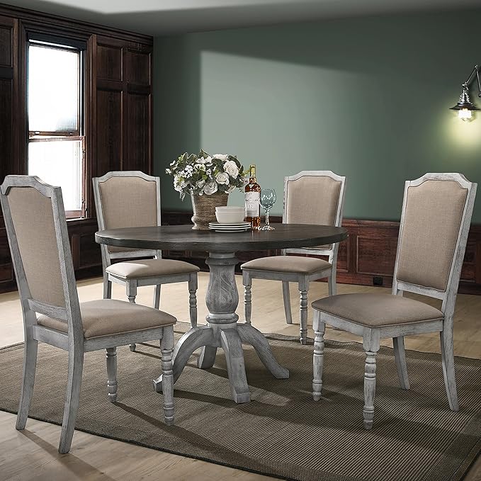 Roundhill Furniture Iris Turned Leg Wood Dining Chair, Set of 2, Weathered White