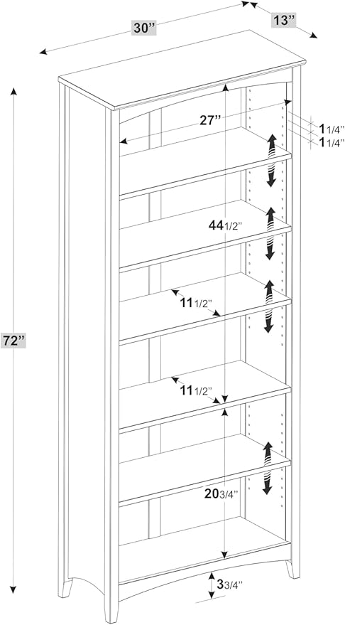 About This One bookcase of six shelves included in purchase Features 6 shelves, 4 adjustable shelves and 2 fixed shelves...