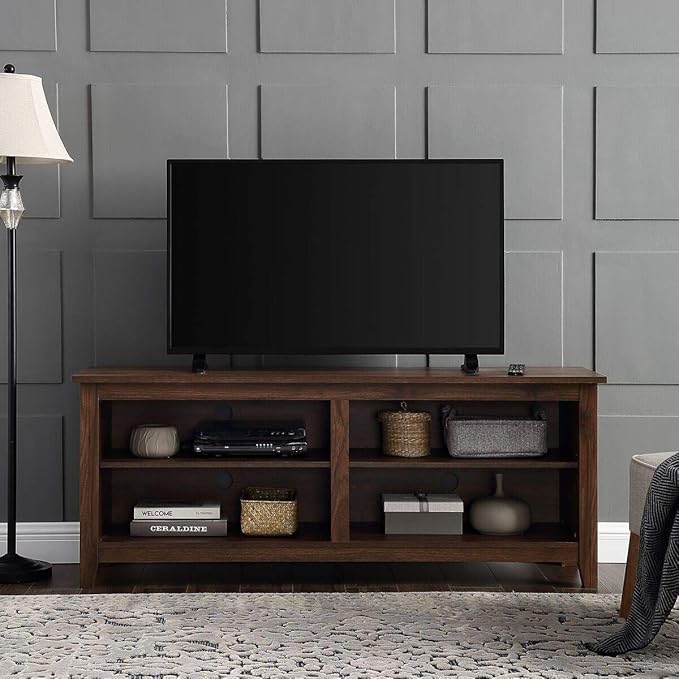 Walker Edison Wren Classic 4 Cubby TV Stand for TVs up to 65 Inches, 58 Inch, Dark Walnut