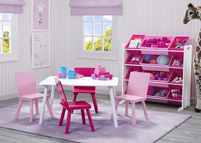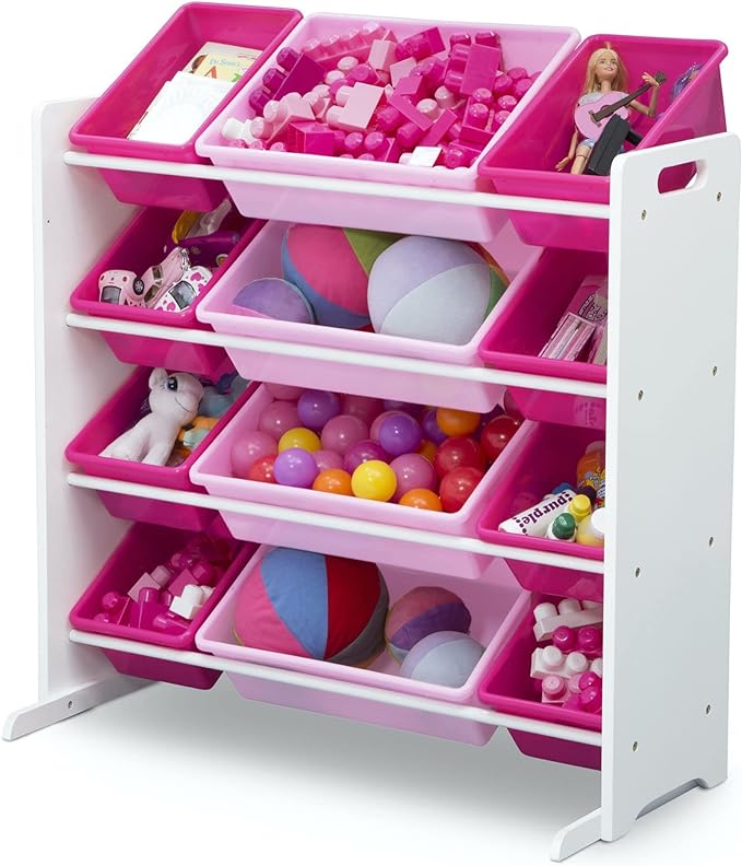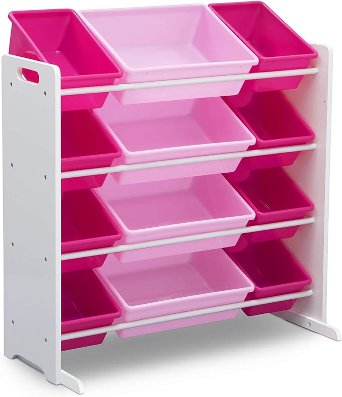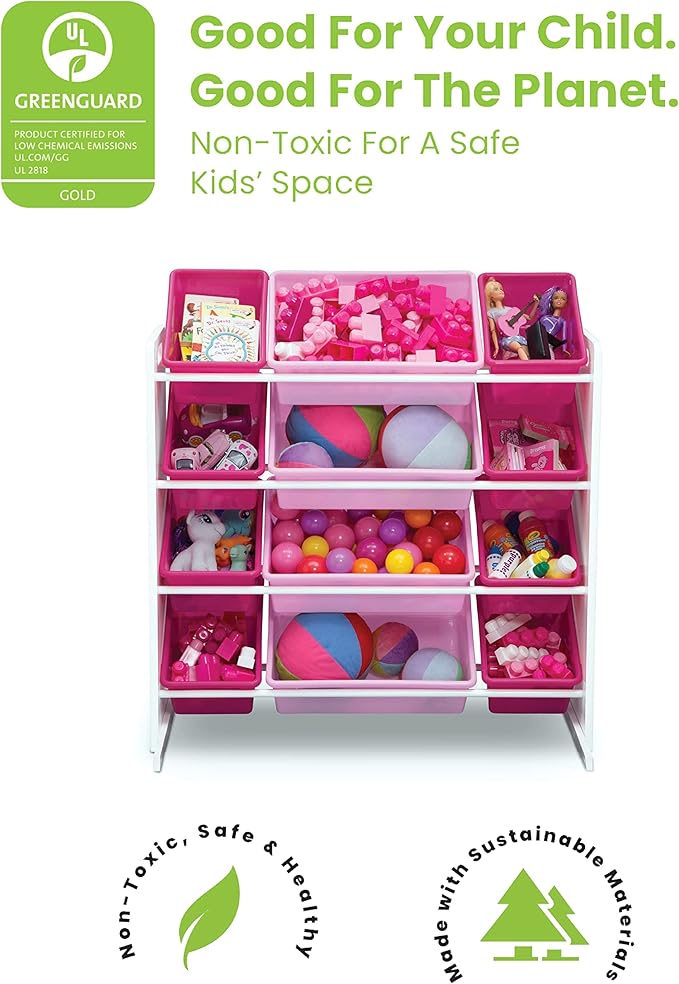 Delta Children Kids Toy Storage Organizer with 12 Plastic Bins - Greenguard Gold Certified, White/Pink
