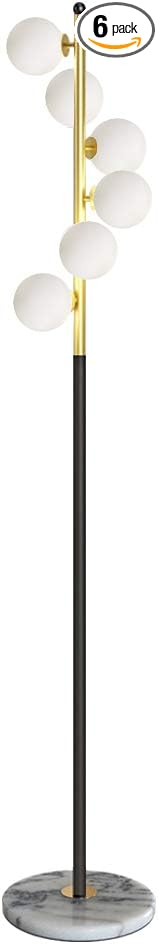 Hsyile Lighting KU300205 White Glass Shade and Marble Base Elegant Modern Creative Floor Lamp for Living Room,Bedroom,Office,6 Lights