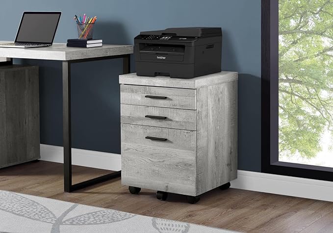 Monarch Specialties I 7401 File Cabinet, Rolling Mobile, Storage Drawers, Printer Stand, Office, Work, Laminate, Grey, Contemporary, Modern