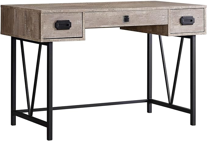 Monarch Specialties Laptop Table with Drawers-Industrial Style-Metal Legs Computer Desk Home & Office, 48" L, Taupe Reclaimed Wood Look