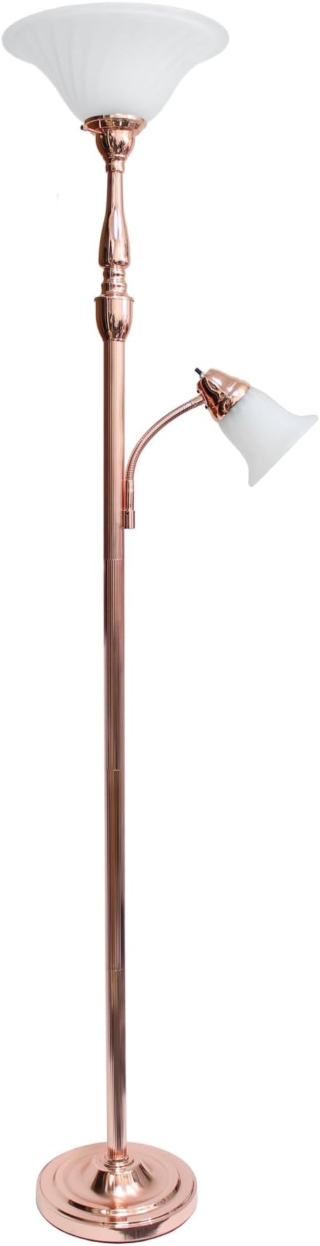 Elegant Designs LF2003-RGD 2 Light Mother Daughter White Marble Glass Floor Lamp, Rose Gold