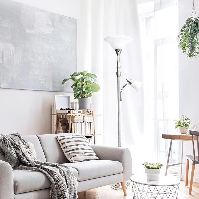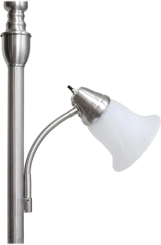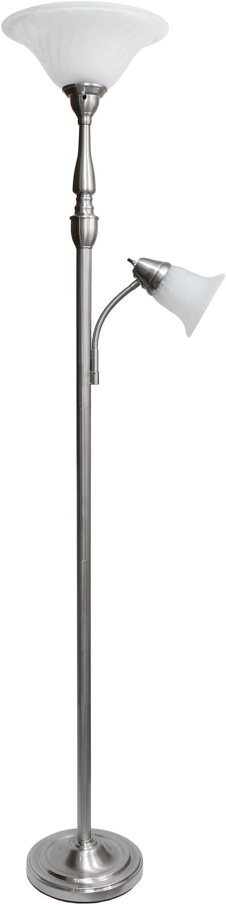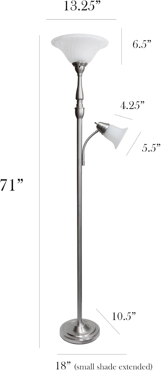 Elegant Designs LF2003-BSN 2 Light Mother Daughter White Marble Glass Floor Lamp, Brushed Nickel