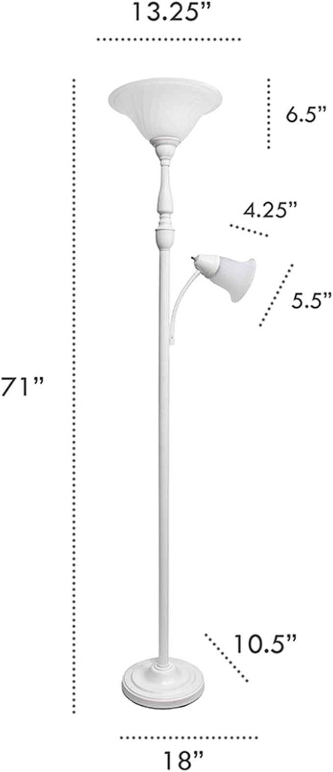 Elegant Designs LF2003-WHT 2 Light Mother Daughter Marble Glass Floor Lamp, White