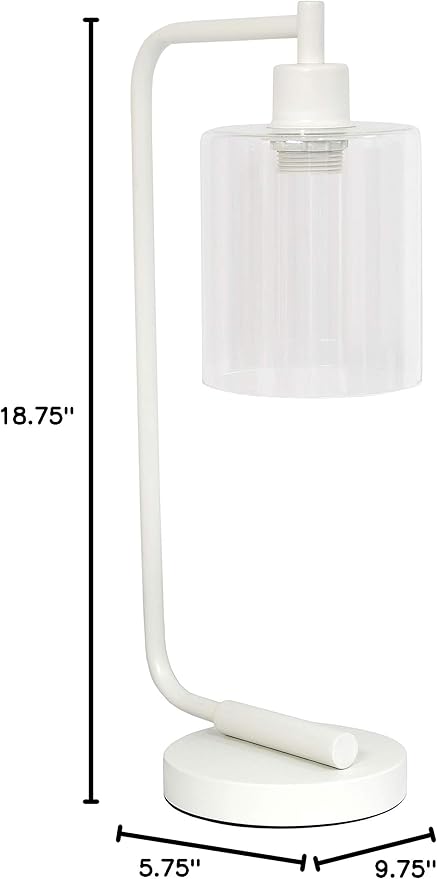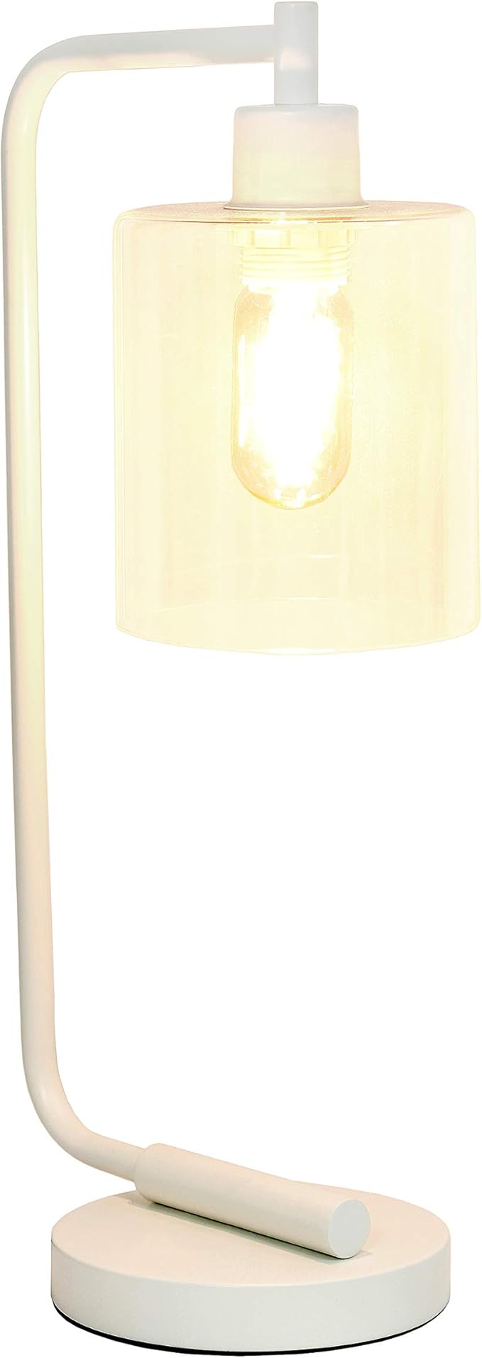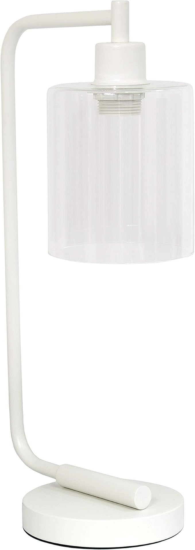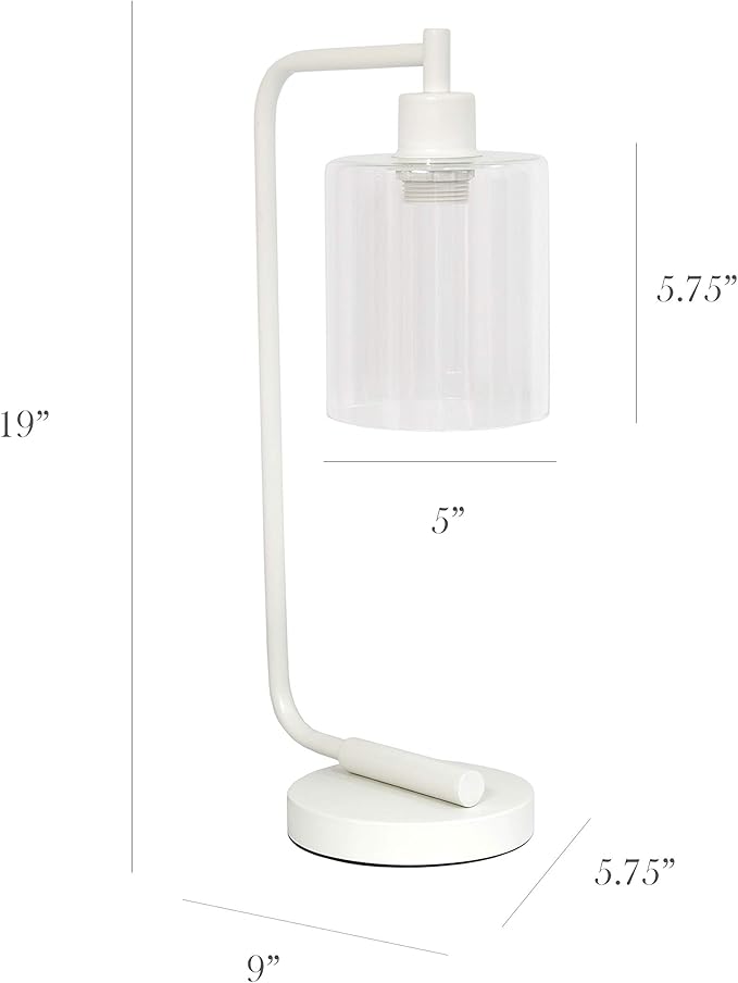 Simple Designs LD1036-WHT Bronson Antique Style Industrial Iron Lantern Desk Bedside Glass Shade Table Lamp, White