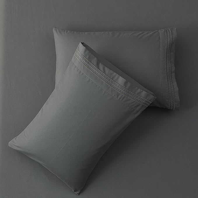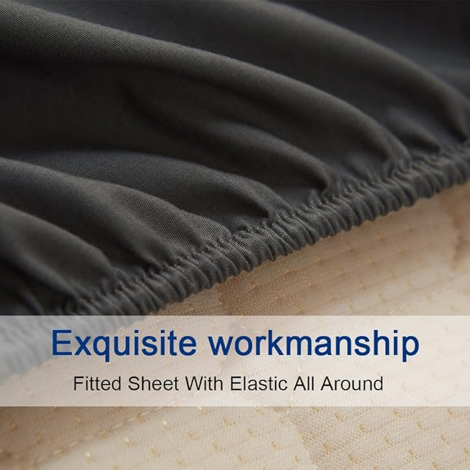 SONORO KATE Bed Sheet Set Super Soft Microfiber 1800 Thread Count Luxury Egyptian Sheets 18-Inch Deep Pocket,Wrinkle and Hypoallergenic-6 Piece (Dark Grey, Twin XL-6 Piece)