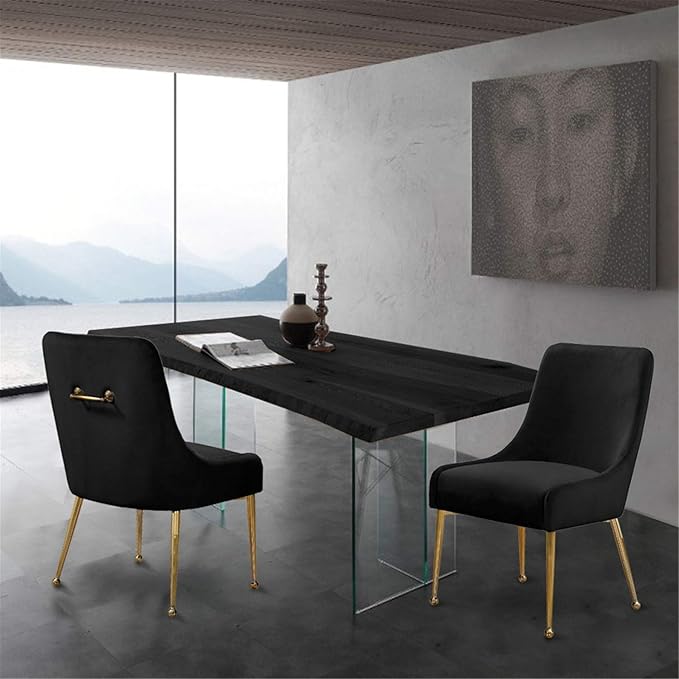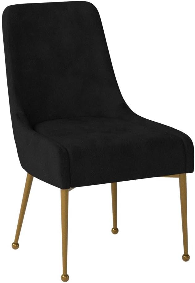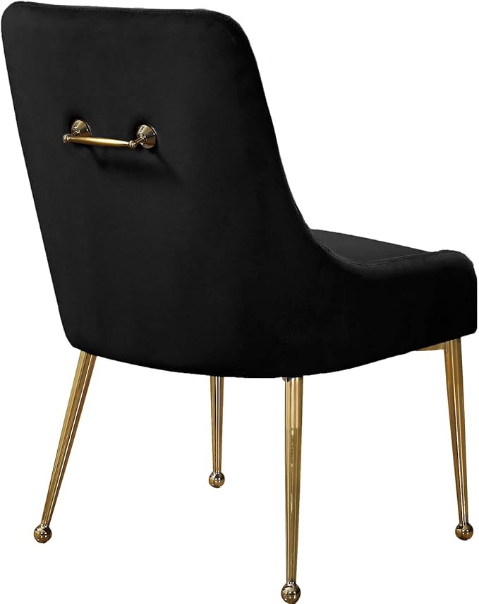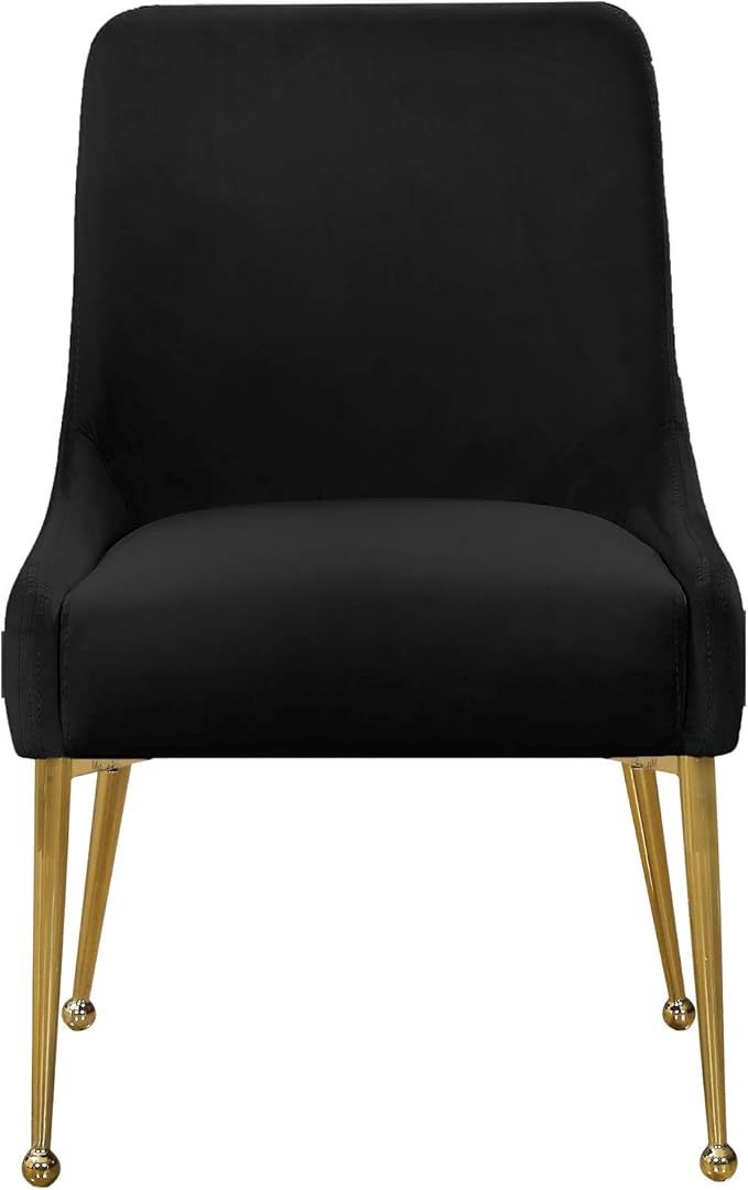 Meridian Furniture Owen Collection Modern | Contemporary Velvet Upholstered Dining Chair with Polished Gold Legs, Set of 2, 24" W x 21" D x 34.5" H, Black