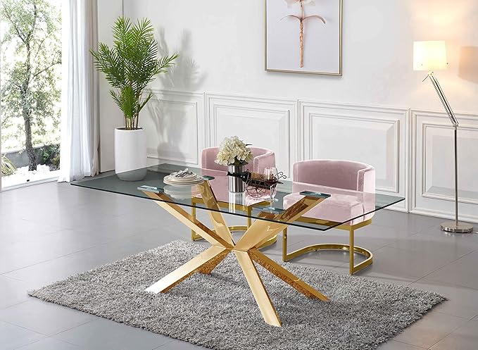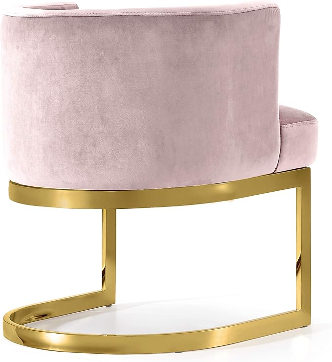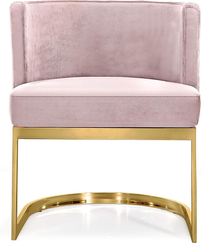 Meridian Furniture Gianna Collection Modern | Contemporary Velvet Upholstered Dining Chair with Polished Gold Metal Frame, 24" W x 22" D x 29.5" H, Pink