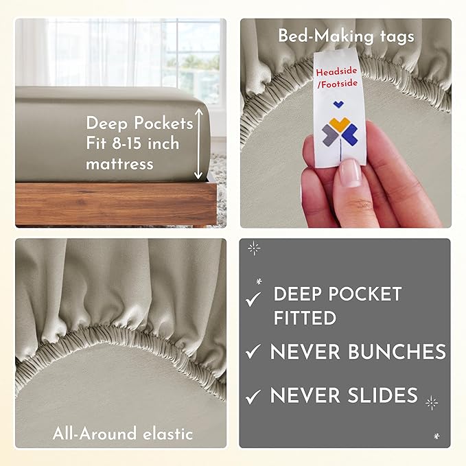 California Design Den Softest 100% Cotton Sheets, Twin Sheets Set, 3 Pc, 400 Thread Count Sateen, Bedding for Dorm Rooms & Adults, Deep Pocket Sheets, Cooling Sheets, Twin Bed Sheets (Taupe)