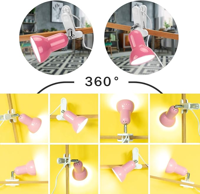 Sun-Rising Cilp on Light,360° rotation Clip on Lamp Portable Book Reading Light,Clamp on Desk/Table/Bunk Bed/Cupboard Home Lighting, (Clamp Light seven colors for your choice) Red
