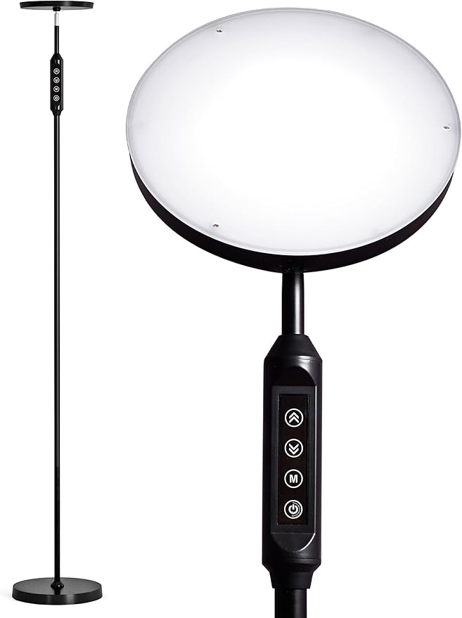 LED Daylight Floor Lamp - Free Standing Lamps for Living Room or Bedroom - 24W Black Modern Uplight Torchiere Stand Light- 3 Dimmable Modes - Natural Day, Warm, Super Bright - Corner Tall Torch Lights