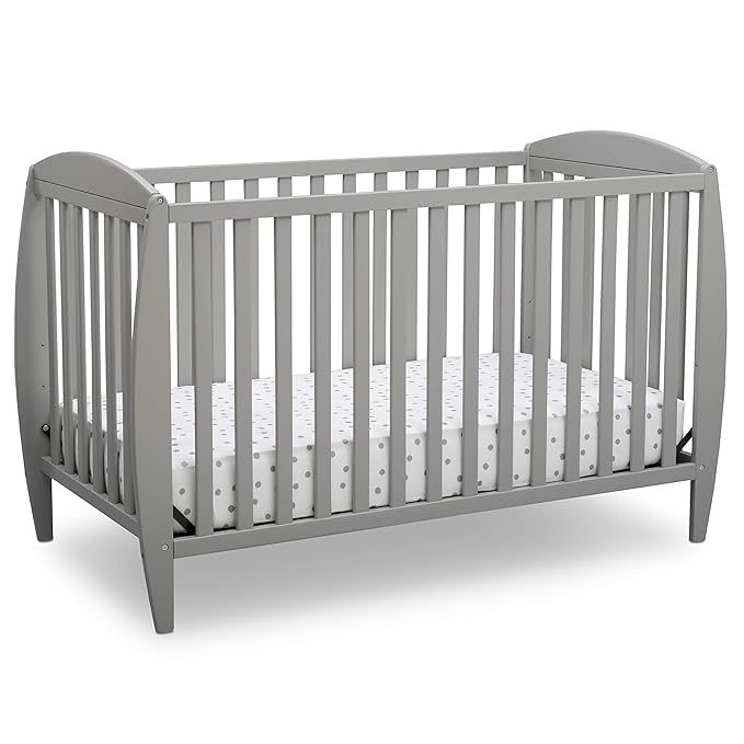 Delta Children Taylor 4-in-1 Convertible Baby Crib, Easy to Assemble, Sustainable New Zealand Wood, Grey