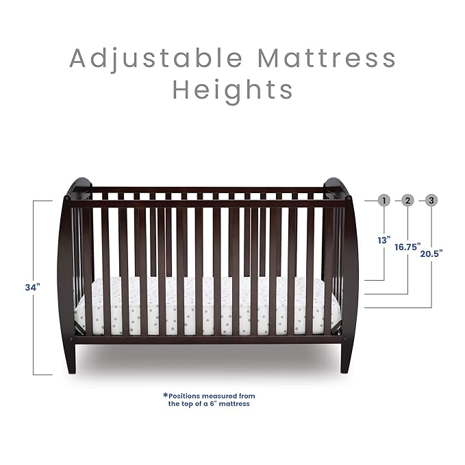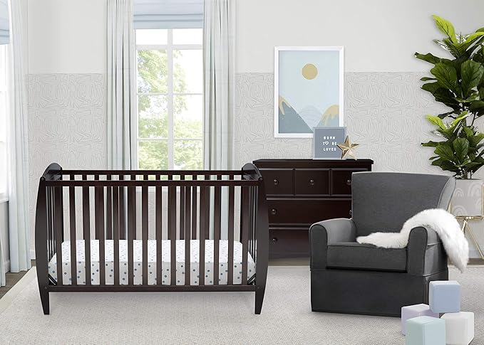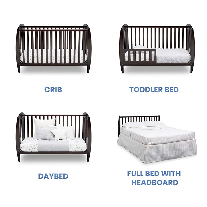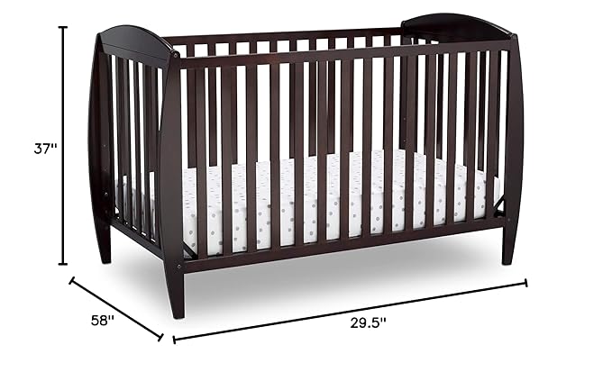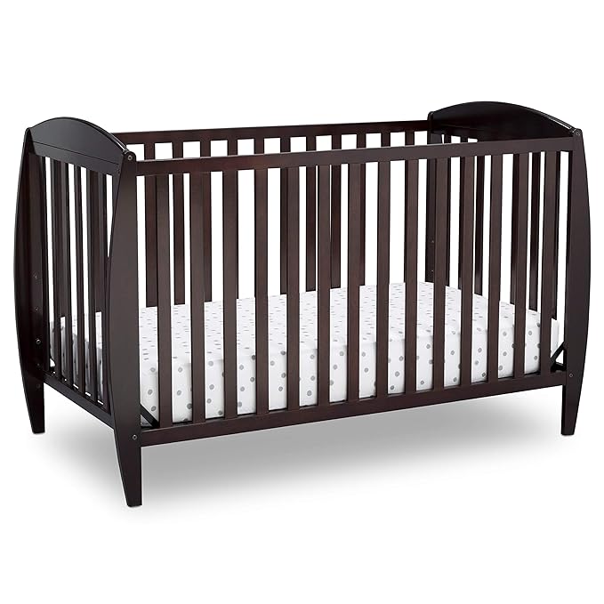 Delta Children Taylor 4-in-1 Convertible Baby Crib, Easy to Assemble, Sustainable New Zealand Wood, JPMA Certified, Dark Chocolate
