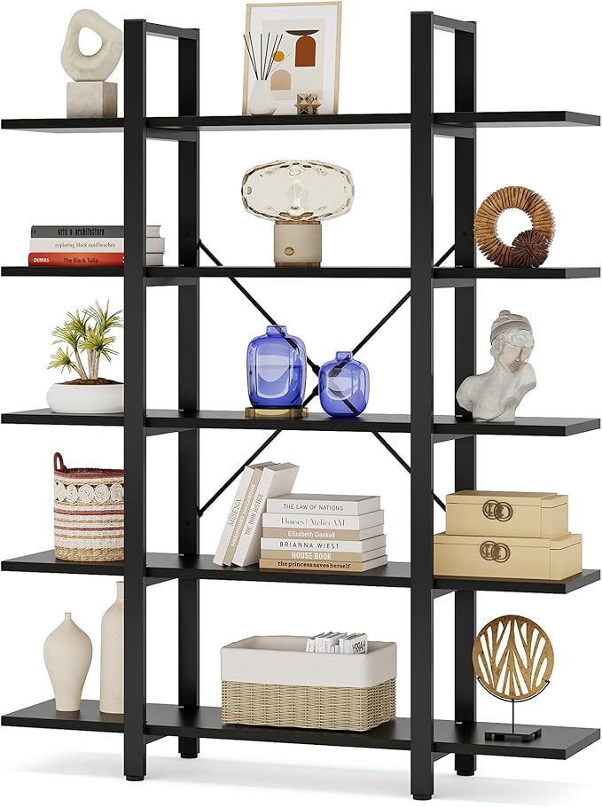 Tribesigns 5-Tier Bookshelf, Vintage Industrial Style Bookcase 72 H x 12 W x 47L Inches, Black