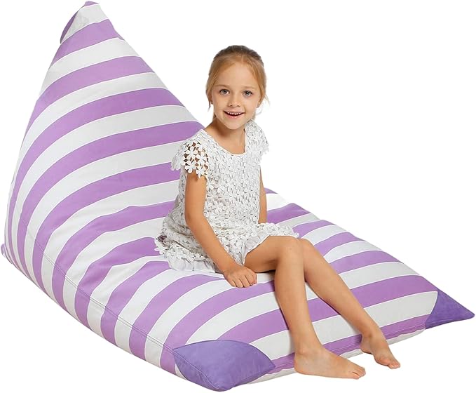 Aubliss Stuffed Animal Storage Bean Bag Chairs Cover, 50"x 35" Extra Large Bean Bags Chair for Kids & Adults, Beanbag Toy Storage for Boys Girls - Premium Cotton Canvas Purple Stripe