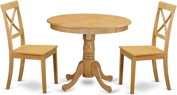 East West Furniture ANBO3-OAK-W Antique 3 Piece Modern Set Contains a Round Table with Pedestal and 2 Kitchen Dining Chairs, 36x36 Inch