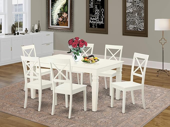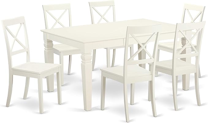 East West Furniture WEBO7-LWH-W 7 Piece Kitchen Set Consist of a Rectangle Table with Butterfly Leaf and 6 Dining Room Chairs, 42x60 Inch, Linen White
