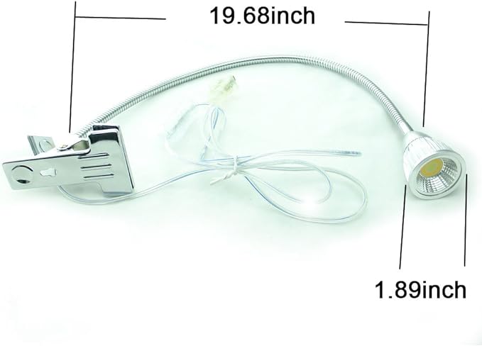 5W 3 Colors LED COB Clip on Light Silver 19.68 INCH 50 CM Tube Desk Flexible Table Bed Lamp Work Home Design lighting 110V 220V 85V - 265V AC with US Plug switch on off 500LM (Silver)