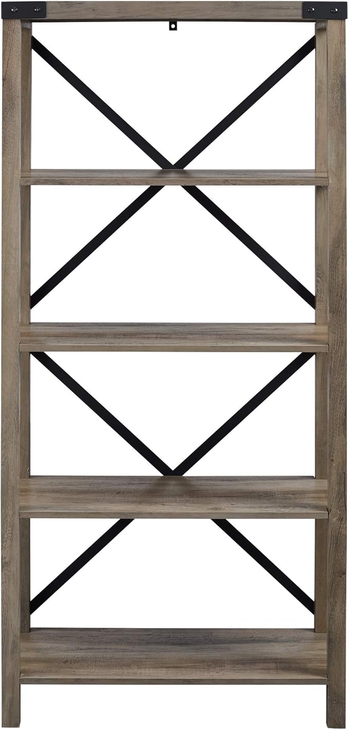 Walker Edison Andersen Urban Industrial Metal X Back 4 tier Bookshelf, 64 Inch, Grey Wash