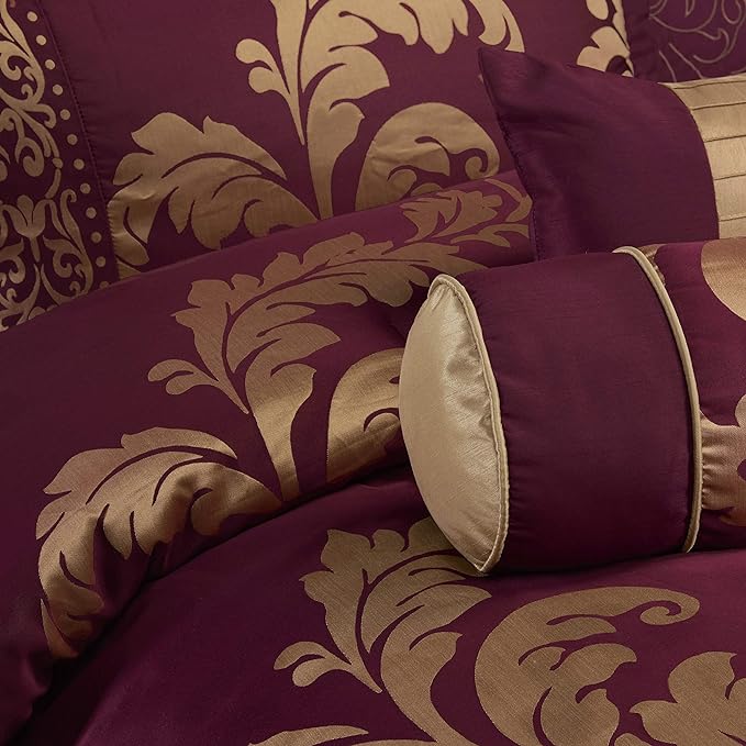 Chezmoi Collection 7-Piece Jacquard Floral Comforter Set (King, Maroon)
