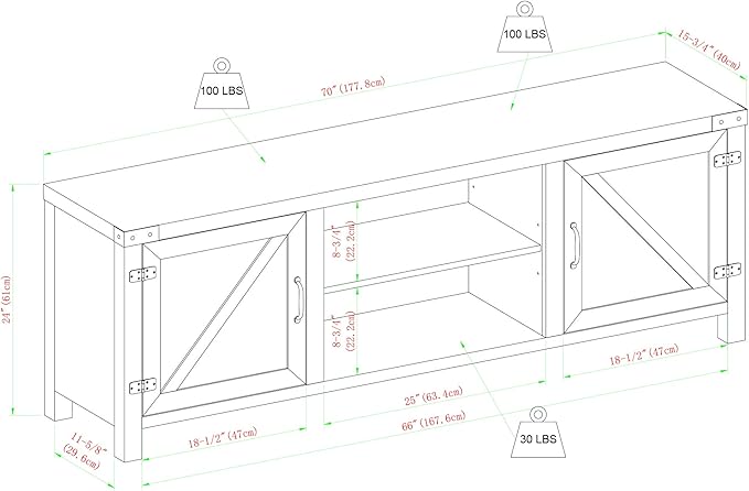 About This Dimensions: 24” H x 15.75” D x 70” L, Open storage cubby: 8.75” H x 12.5” D x...