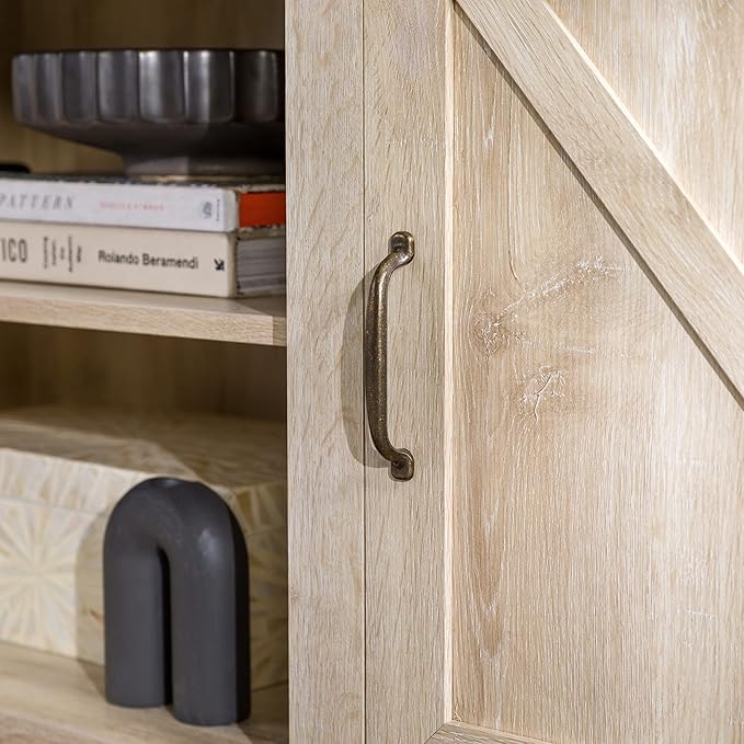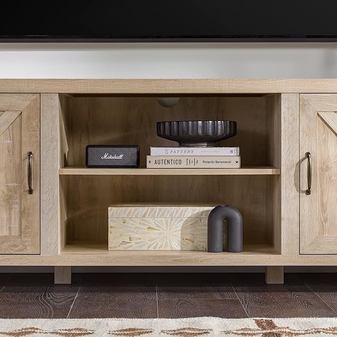 Walker Edison Georgetown Modern Farmhouse Double Barn Door TV Stand for TVs up to 80 Inches, 70 Inch, White Oak, Without Fireplace