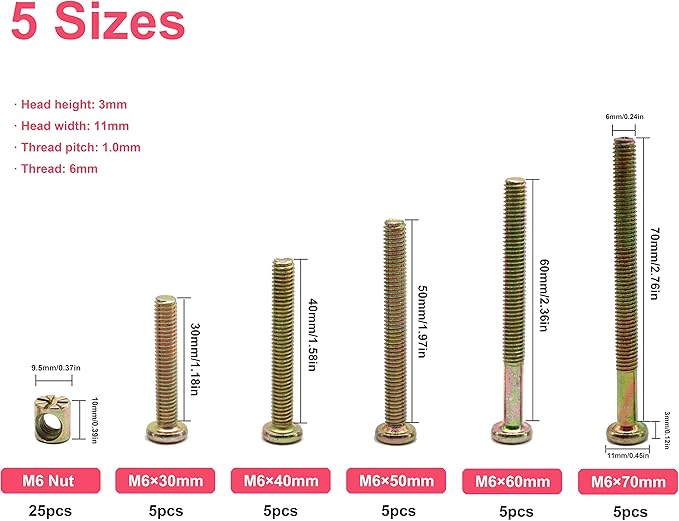 About This ☛Name: Allen Head Crib Hardware Kit; ☛Include M6 x 30mm, M6 x 40mm, M6 x50mm, M6 x 60mm,...