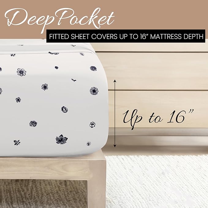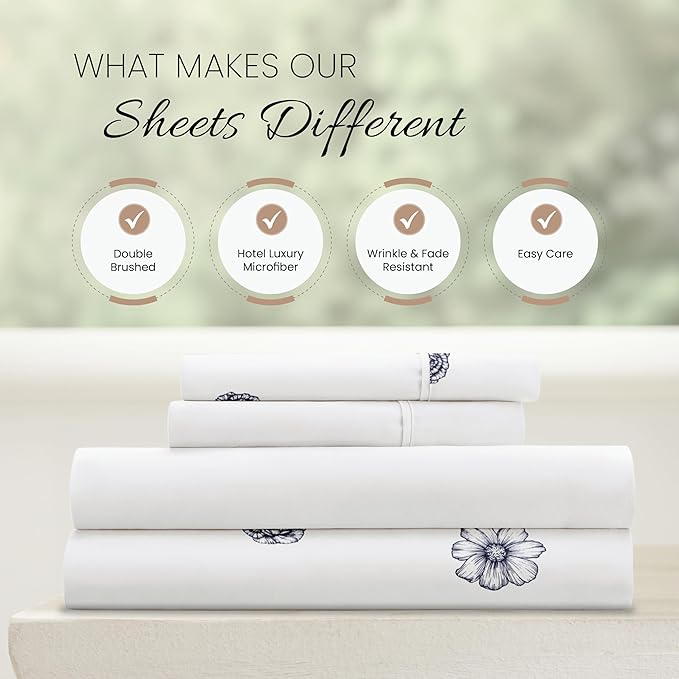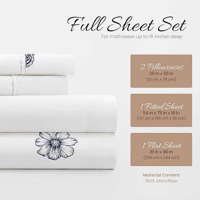 Linen Market 4 Piece Full Bedding Sheet Set (Navy Blue Flowers) - Sleep Better Than Ever with These Ultra-Soft & Cooling Bed Sheets for Your Full Size Bed - Deep Pocket Fits 16" Mattress