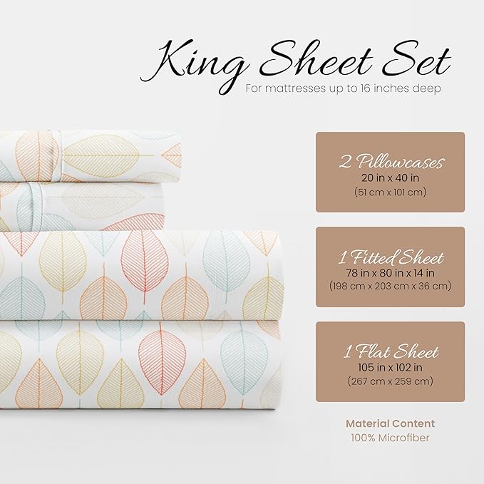 Linen Market 4 Piece King Bedding Sheet Set (Yellow Fall Foliage) - Sleep Better Than Ever with These Ultra-Soft & Cooling Bed Sheets for Your King Size Bed - Deep Pocket Fits 16" Mattress