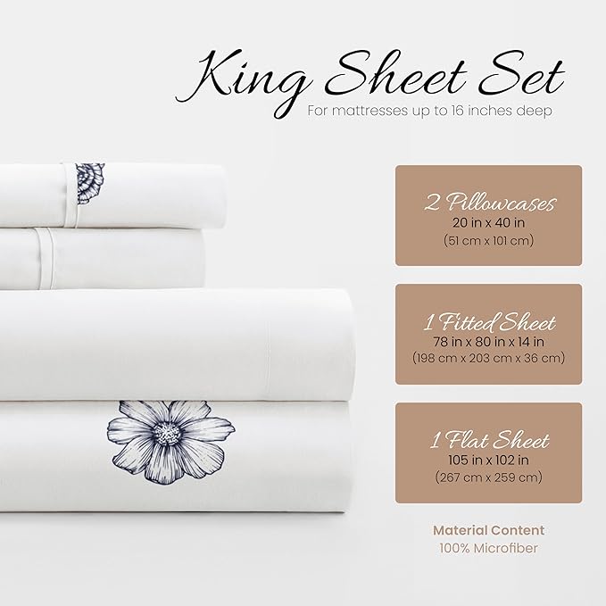 Linen Market 4 Piece King Bedding Sheet Set (Navy Blue Flowers) - Sleep Better Than Ever with These Ultra-Soft & Cooling Bed Sheets for Your King Size Bed - Deep Pocket Fits 16" Mattress