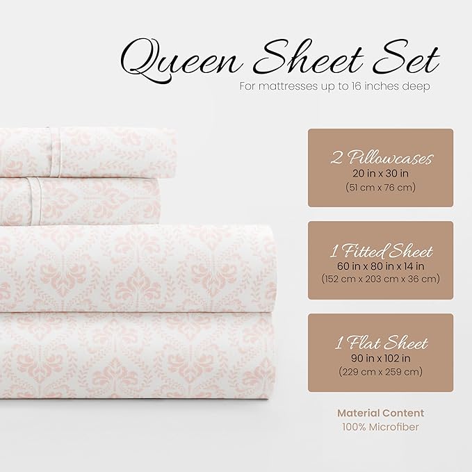Linen Market 4 Piece Queen Bedding Sheet Set (Pink Floral) - Sleep Better Than Ever with These Ultra-Soft & Cooling Bed Sheets for Your Queen Size Bed - Deep Pocket Fits 16" Mattress