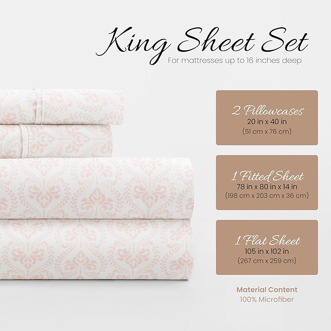 Linen Market 4 Piece King Bedding Sheet Set (Pink Classic) - Sleep Better Than Ever with These Ultra-Soft & Cooling Bed Sheets for Your King Size Bed - Deep Pocket Fits 16" Mattress