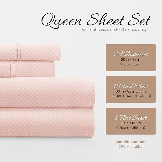 Linen Market 4 Piece Queen Bedding Sheet Set (Pink Heart) - Sleep Better Than Ever with These Ultra-Soft & Cooling Bed Sheets for Your Queen Size Bed - Deep Pocket Fits 16" Mattress
