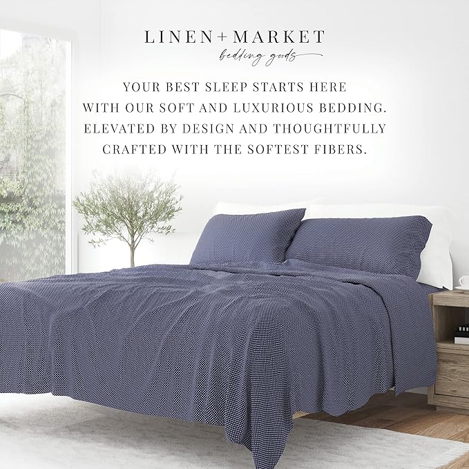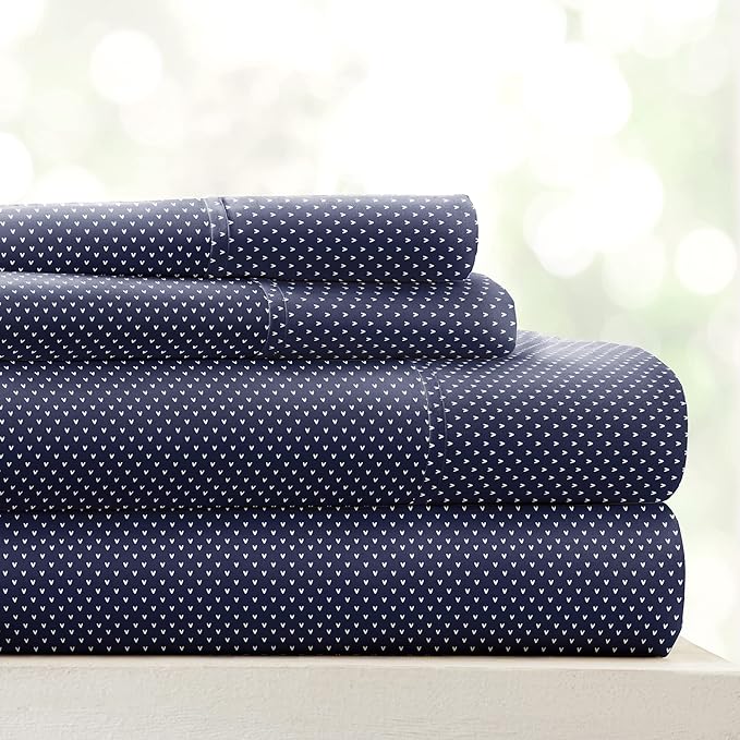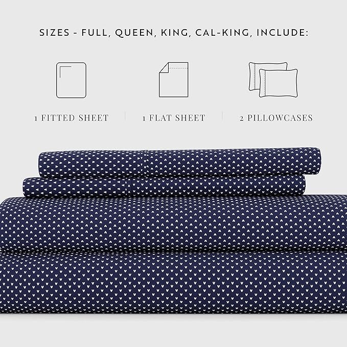 Linen Market 4 Piece Full Bedding Sheet Set (Navy Blue Hearts) - Sleep Better Than Ever with These Ultra-Soft & Cooling Bed Sheets for Your Full Size Bed - Deep Pocket Fits 16" Mattress