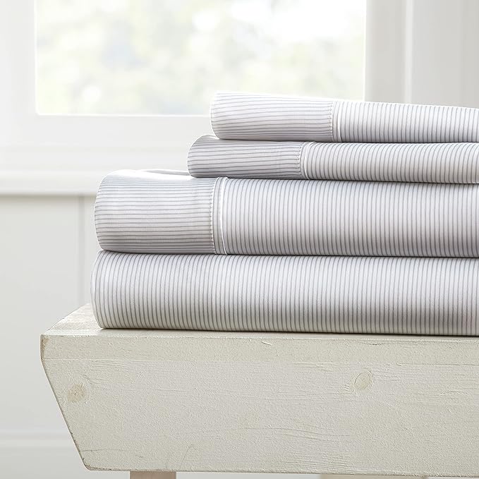 Linen Market 4 Piece Queen Bedding Sheet Set (Light Gray Pinstriped) - Sleep Better Than Ever with These Ultra-Soft & Cooling Bed Sheets for Your Queen Size Bed - Deep Pocket Fits 16" Mattress