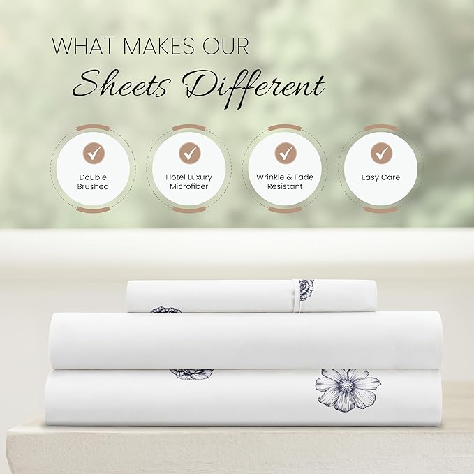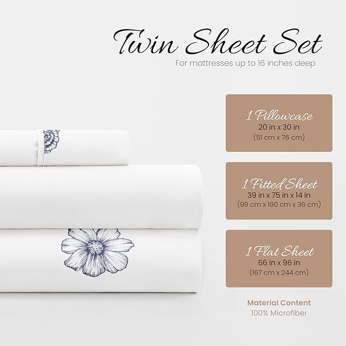 Linen Market 3 Piece Twin Bedding Sheet Set (Navy Blue Flowers) - Sleep Better Than Ever with These Ultra-Soft & Cooling Bed Sheets for Your Twin Size Bed - Deep Pocket Fits 16" Mattress